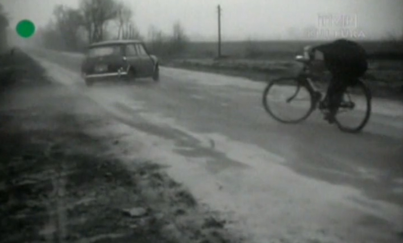 יצאתי עם קופר מהסיבוב והתקרבתי ל'כפרייה' (סטאשק, הצלם המחופש), בדיוק כפי שכתבתי בתסריט. אך ברגע שקופר הייתה אמורה לעקוף את האופניים מקרוב – סטאשק, משום מה, לחץ בחוזקה על הדוושות וסטה שמאלה. פחדתי להרוג אותו, כי נסעתי במרחק של סנטימטרים ספורים מהאופניים שלו, ולכן שברתי שמאלה. המהירות הייתה איזה 120-130 קמ"ש, וקופר החליקה בתת-היגוי מטורף. ניסיתי להישאר על הכביש והחלקתי ימינה ושוב שמאלה, כמו בריקוד קאן-קאן. אני רואה את הקטע 50 שנה בערך, ועדיין לא מאמין שלא התהפכנו. במיוחד לנוכח העובדה שאף כי הייתה לי קופר משלי, עוד לא הבנתי אז הרבה בנהיגה תחרותית עם הנעה קדמית.