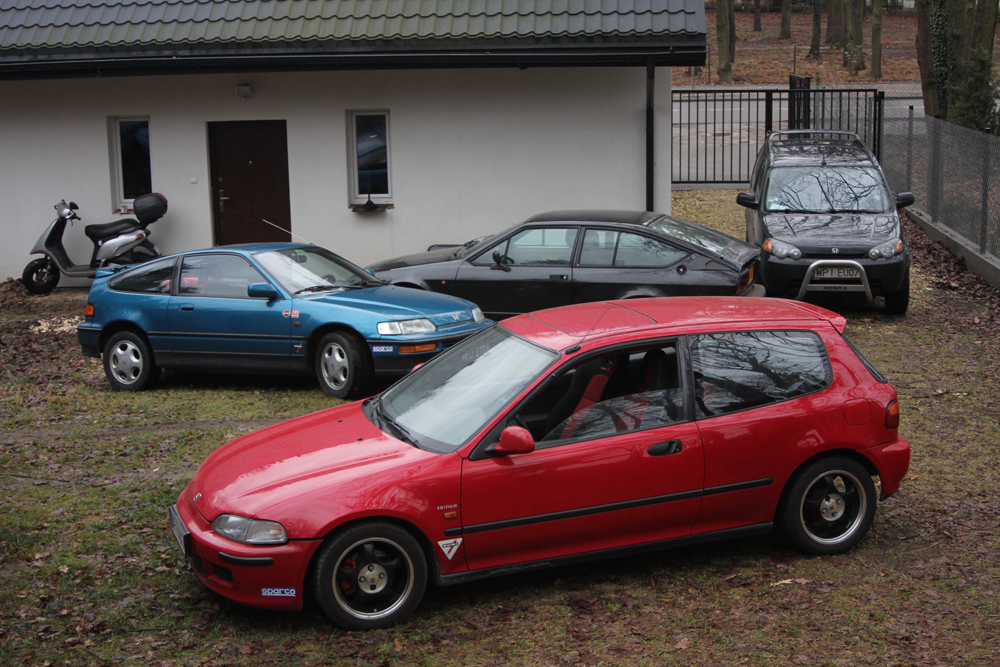 ארבע יצירות מופת: הונדה האצ'בק מפלצתית של בני בעלת מנוע אינטגרה R, הונדה CRX בעלת מנוע VTEC, אלפא GTV קשישה והונדה HR-V, כי בכל זאת צריך משהו לנסיעות נורמליות. רק לרחוץ אותן לוקח שלוש שעות