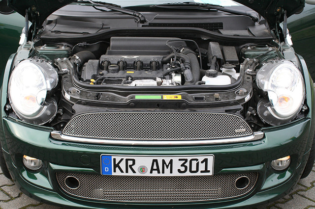 מכשיר תנועה למבינים בלבד: מיני קופר S בצבע ירוק, כמסורת המכוניות הבריטיות במרוצים – כאן בגרסת JCW (ג'ון קופר וורקס). יש לה 218 כ"ס כי מדובר בגרסת JP, שבמקום מושב אחורי מותקן בה מוט מחזק לטובת אחיזת הכביש (ושלמות הקבינה…). אבל זה עוד לא הסוף. מכונית זו עברה טיפולים גם בחברת השיפורים ארדן, שהשלימה את החבילה המושקעת ממילא שיצאה מהסדנה של ג'ון קופר. בתנאי הארץ של היום, מיני זו מתאימה לנסיעה בין מלכודות הרדאר שפוזרו ביד רחבה