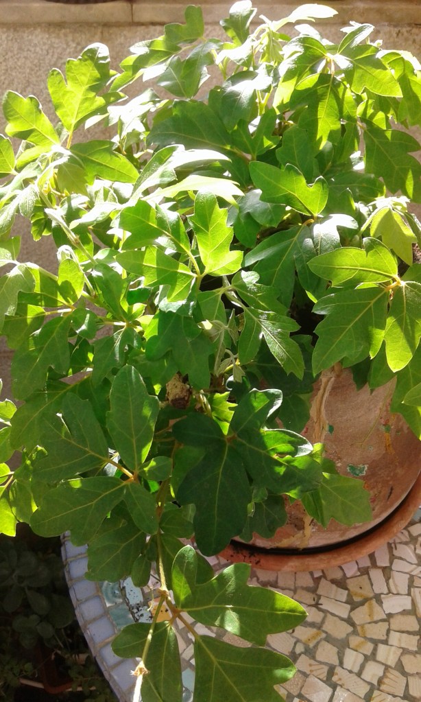 למעשה, כה עז ומהיר הוא לבלובו של היצור הירוק, עד כי בדוחק ניתן כבר להבחין בחמר הצבוע שבתוכו הוא נעוץ, אותו כלי שהיה העילה ההתחלתית לאימוץ השיח האומלל.